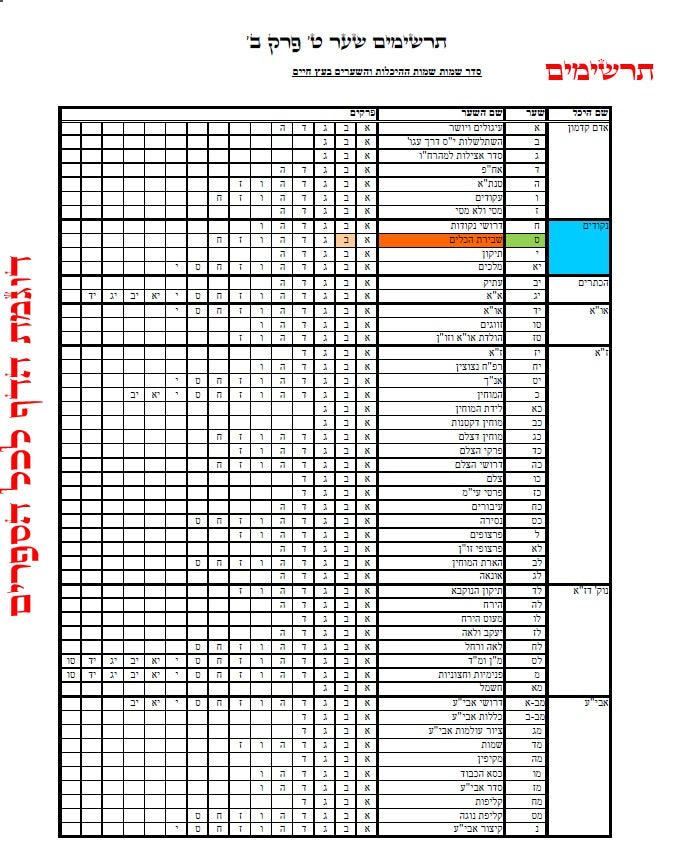 עץ חיים שער השבירה שער ט' פרק ג': הגהות, ביאורים, הסברים תרשימים, טבלאות וציורים בצבע – שמחת חיים